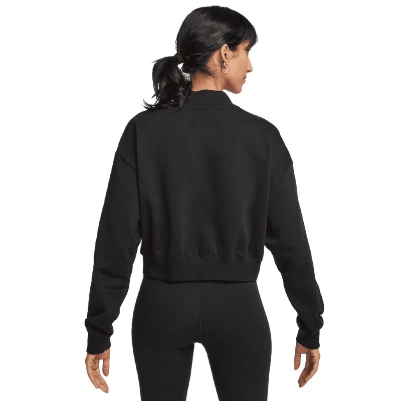 A bomber-like jacket made with sweatshirt material? Yes, please! Cropped to meet your favorite high-waisted pants, this oversized jacket is the perfect layer for colder days that call for a little extra style. Smooth on the outside, slightly fuzzy on the inside, Nike midweight semi-brushed fleece helps keep you cozy while still being breezy. It’s a comfy layer to wear year-round, perfect for those tricky in-between temps.